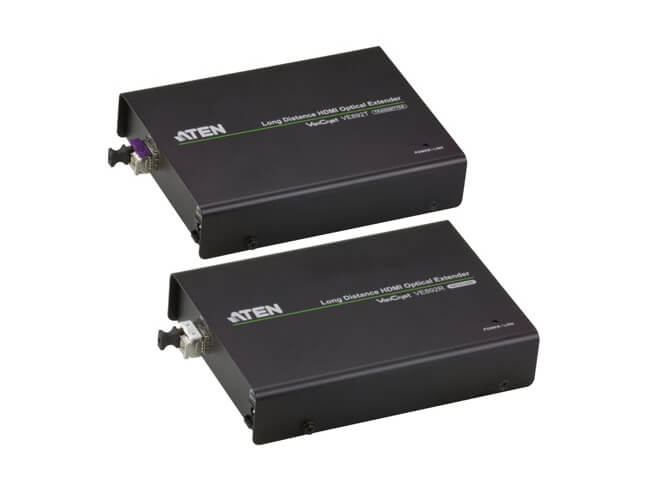 El VE892 es un alargador HDMI por fibra óptica que supera las restricciones de longitud de los cables HDMI tradicionales. Por la fibra óptica se pueden enviar señales audiovisuales de alta definición a larga distancia