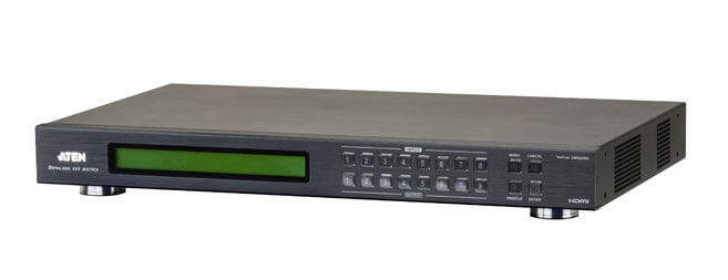 El Conmutador de matriz HDMI VM5808H 8 x 8 es una elegante solución HDMI que ofrece una forma sencilla y asequible de redireccionar 8 fuentes de vídeo HDMI a 8 pantallas HDMI con una visión rápida de todas las conexiones de puertos a través del LCD del panel delantero.