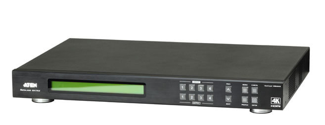 4K es la siguiente generación de calidad de imagen para vídeo de alta definición. 4K proporciona ocho millones de píxeles, lo cual supone cuatro veces más de detalle que las resoluciones Full HD 1080p. El conmutador de matriz HDMI 4K con módulo de escala VM6404H de ATEN es compatible con los dos estándares de resolución de vídeo 4K más recientes: 3840 x 2160 y 4096 x 2160.